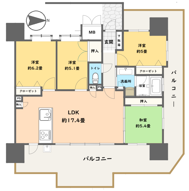 約89.72平㎡・4LDK・南向きのお部屋♪